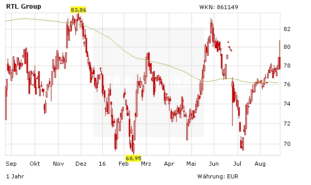 Ungeachtet der schwächeren Q2-Zahlen hält der Vorstand an der Prognose eines Umsatzwachstums von 2,5 bis fünf Prozent im laufenden Gesamtjahr fest. Beim Gewinn vor Zinsen, Steuern und Abschreibungen auf immaterielle Vermögenswerte (EBITA) blickt RTL sogar etwas optimistischer in die Zukunft und hat ein Plus von 1,0 bis 2,5 Prozent in Aussicht gestellt. Zuvor war lediglich mit einem stabilen Ergebnis gerechnet worden.