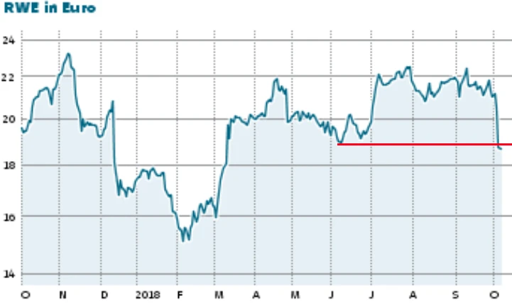 Nach dem überraschenden Rodungsstopp am Hambacher Forst musste RWE am Freitag eine Gewinnwarnung veröffentlichen. Die Aktie kam danach deutlich unter Druck. Doch Anleger sollten deshalb nicht in Panik verfallen. Auch die Experten raten trotz des Rückschlags weiter zum Kauf der Versorger-Aktie.