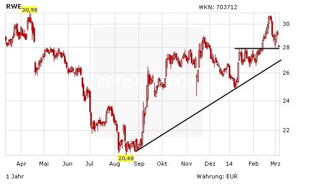 Die Experten der Privatbank Berenberg haben das Kursziel für die RWE-Aktie von 21,80 auf 25,00 Euro angehoben. Die „Sell“-Einstufung bestätigte Analyst Andrew Fisher jedoch in seiner jüngsten Branchenstudie. Seit dem Bewertungshöhepunkt 2007 hat sich die Branche jedes Jahr schwächer entwickelt. Nun scheinen laut seiner Studie jedoch alle negativen Faktoren eingepreist und die Energiepreise stabilisieren sich. Trotz des Sparkurses ist es jedoch fraglich, ob RWE ohne Kapitalerhöhung auskommen wird.