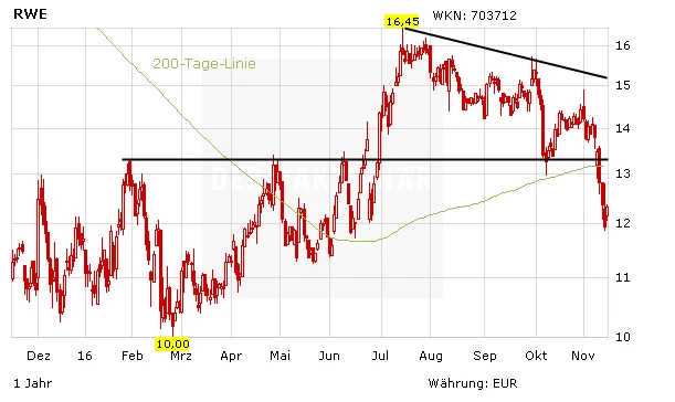 Der deutliche Gewinnrückgang in den ersten neun Monaten des laufenden Jahres kam bei den Anlegern nicht gut an. Da der Versorger die Erwartungen knapp verfehlt habe, senkte auch Analyst Jia Man Neoh von S&P Global seine Gewinnschätzungen. Ermutigt habe ihn aber die gesteigerte Profitabilität im konventionellen Kraftwerksgeschäft. Das Kursziel für RWE reduzierte der Experte von 17 auf 14 Euro, die Einstufung lautet weiter „Buy“.