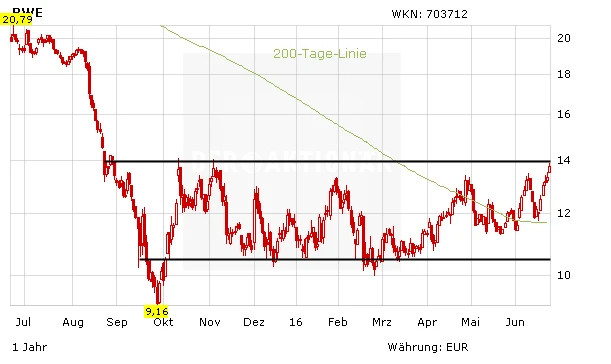 Langfristig stehen bei RWE die Risiken nach wie vor im Vordergrund. Das aufgehellte Chartbild spricht aber für die Aktie. Spielt das Marktumfeld nach dem Brexit-Referendum mit, dürfte der Versorger vorerst weiter outperformen. Trader können mit engem Stopp auf den Ausbruch aus dem Seitwärtstrend bei 14,00 Euro setzen.
