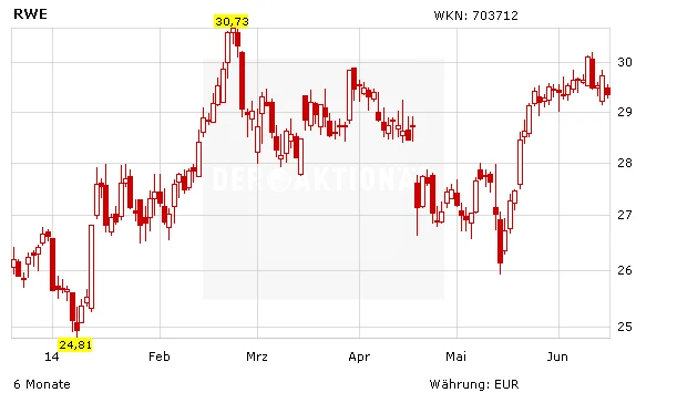 Noch am Freitag hatte sich die Aktie von RWE leicht erholen können, in die neue Woche startet der Wert nun aber mit einem relativ deutlichen Minus von 1,4 Prozent. Ohnehin zeigen sich die Analysten skeptisch, was die weitere Entwicklung der RWE-Aktie angeht. Die Schweizer Großbank UBS hat zuletzt ihre Einstufung auf „Sell“ belassen genauso wie die Deutsche Bank, die das Kursziel bei 20 Euro sieht. Auch DER AKTIONÄR schließt sich den skeptischen Stimmen an. Unter den Versorgeraktien favorisiert DER AKTIONÄR weiterhin die E.on-Aktie, die insbesondere für die Energiewende besser aufgestellt ist.
