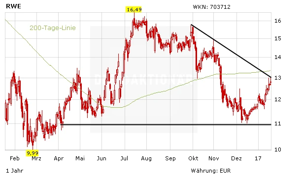 Die Energieversorger RWE und E.on haben zu Jahresbeginn bislang zu den stärksten Werten im DAX gezählt. Nach dem jahrelangen Abwärtstrend haben die Anleger bei RWE die Hoffnung, dass nach der Abspaltung der Tochter Innogy die Trendwende gelingt. Ein gutes Zeichen ist, dass auch die Insider optimistisch sind.