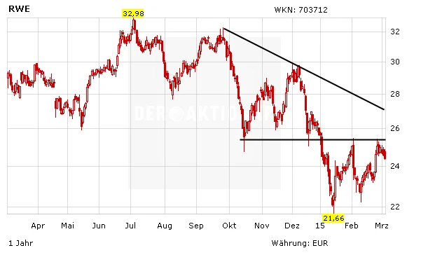 Im Fokus der Anleger steht nun die anstehende Bilanzpressekonferenz. Am kommenden Dienstag, den 10. März, veröffentlicht RWE Zahlen zum abgelaufenen Geschäftsjahr. Im Vorfeld hat die UBS den DAX-Titel noch einmal unter die Lupe genommen. Analyst Patrick Hummel hat die Einstufung auf „Neutral“ mit einem Kursziel von 26 Euro belassen. RWE dürfte für 2015 einen Gewinn je Aktie in Höhe von 1,85 Euro anpeilen, so der Experte. Nach dem erfolgreichen Verkauf der Öl- und Gasfördertochter Dea seien nun keine revolutionären strategischen Ankündigungen zu erwarten. Insgesamt rechnet Hummel bei den Branchenvertretern mit einem verhaltenen Ausblick auf 2015. Die attraktive Bewertung sowie die Dividendenrenditen jedoch sollten die Anteilsscheine stützen.