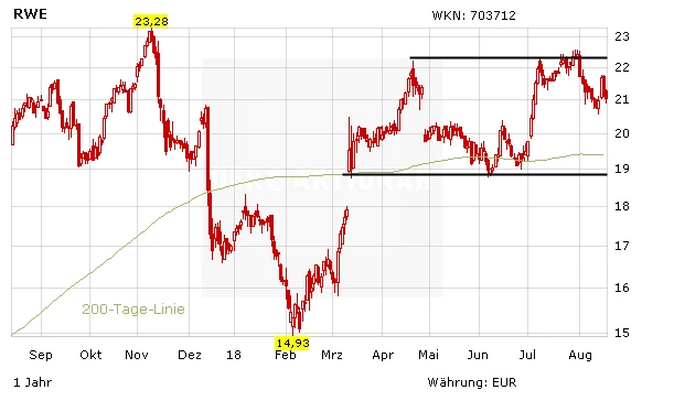 Im Gegensatz zu vielen anderen Blue Chips hat RWE die jüngste Korrektur relativ gut überstanden. Der Grund: Trotz eines Gewinnrückgangs im zweiten Quartal wurden die Erwartungen übertroffen. Auch die weiteren Aussichten sind gut. Rückenwind gibt es für die Aktie nun von Seiten der Analysten.