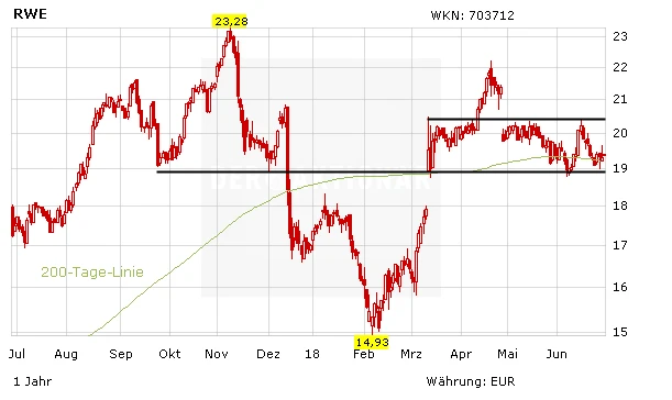 Es wird noch Jahre dauern bis RWE die Millionensumme in der Hand hält. Dennoch ist die Entschädigung eine gute Nachricht. In Zukunft wird RWE die gesamte Bandbreite der Stromversorgung abdecken und kann damit auch operativ optimistisch nach vorne blicken. Die Aktie hat sich im schwachen Marktumfeld zuletzt ebenfalls relativ stabil gezeigt. Anleger bleiben an Bord.