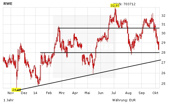Die Schwierigkeiten beim Verkauf von Dea verdeutlichen die bisherige Einschätzung des AKTIONÄR: In der Versorgerbranche ist RWE nur zweite Wahl. Der DAX-Konkurrent E.on ist für die Energiewende besser aufgestellt und punktet mit einer attraktiven Dividendenrendite von rund 3,5 Prozent. Auch bei E.on sollten Neueinsteiger im schwachen Marktumfeld aber vorerst abwarten. Investierte Anleger beachten den Stoppkurs des AKTIONÄR bei 11,50 Euro.