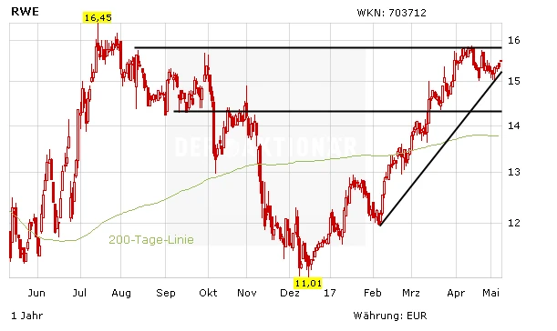Das aktuelle Preisspitzenmodell weist ein großes Problem auf. Die Einnahmen sind unberechenbar, so dass sich Investitionen in Kraftwerke kaum planen lassen. Ein Kapazitätsmarkt wäre für RWE deshalb eine sinnvolle Lösung. Ob das Modell umgesetzt wird, steht aber weiter in den Sternen. Die Hoffnung auf steigende Strompreise treibt die Aktie aber auch so weiter an. Ein Investment bleib jedoch hochspekulativ.