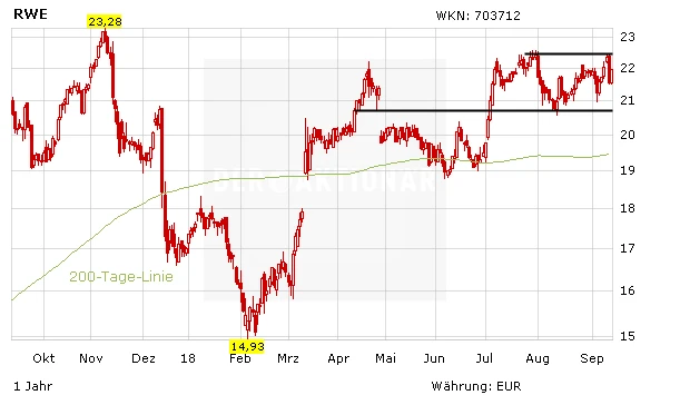 Mit der Rückbesinnung auf die erneuerbaren Energien ist RWE aber ohnehin gut gerüstet für die Zukunft. Anleger sollten sich wie gezeigt auch wegen der SSE-Gewinnwarnung keine Sorgen machen. Gewinne laufen lassen! Die Aktie ist derzeit attraktiver als der Wettbewerber E.on.