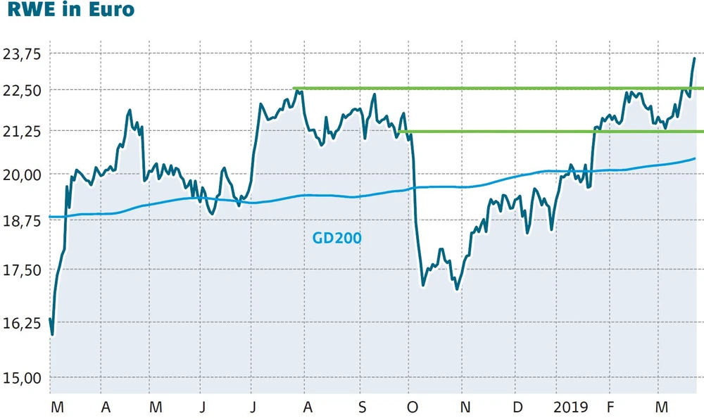 Die RWE-Aktie geht durch die Decke. Seit Jahresbeginn hat der Versorger inzwischen bereits 24 Prozent an Wert gewonnen, RWE ist damit der stärkste Wert im DAX. Inzwischen ist auch charttechnisch der Ausbruch gelungen, die Aktie hat ein neues Mehrjahreshoch erreicht. Umkämpft bleibt derweil die Situation am Hambacher Forst, hier drohen Milliarden-Kosten.