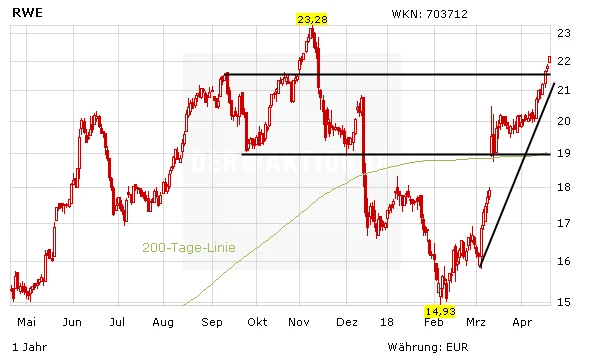 Anleger sollten sich keine Sorgen machen. RWE hat sich durch den Verkauf von Innogy ein klares Profil gegeben. Der Konzern wird zum reinen Stromerzeuger, der neben den konventionellen Kraftwerken künftig aber auch wieder im Bereich der erneuerbaren Energien tätig sein wird. Die Aktie ist moderat bewertet und bietet eine attraktive Dividendenrendite von knapp sieben Prozent – Ex-Dividende-Tag ist am kommenden Freitag, den 27. April. Anleger können zugreifen.