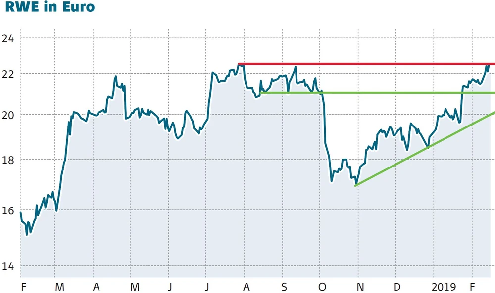 Noch ist offen, wie hoch die Entschädigungen für RWE ausfallen. Erste Rechnungen deuten aber darauf hin, dass die Bewertung des konventionellen Geschäfts am Markt bislang zu negativ ausfällt. Entsprechend dürfte auch bei der Aktie noch Luft nach oben sein. Anleger können zugreifen und auf den charttechnischen Ausbruch setzen.