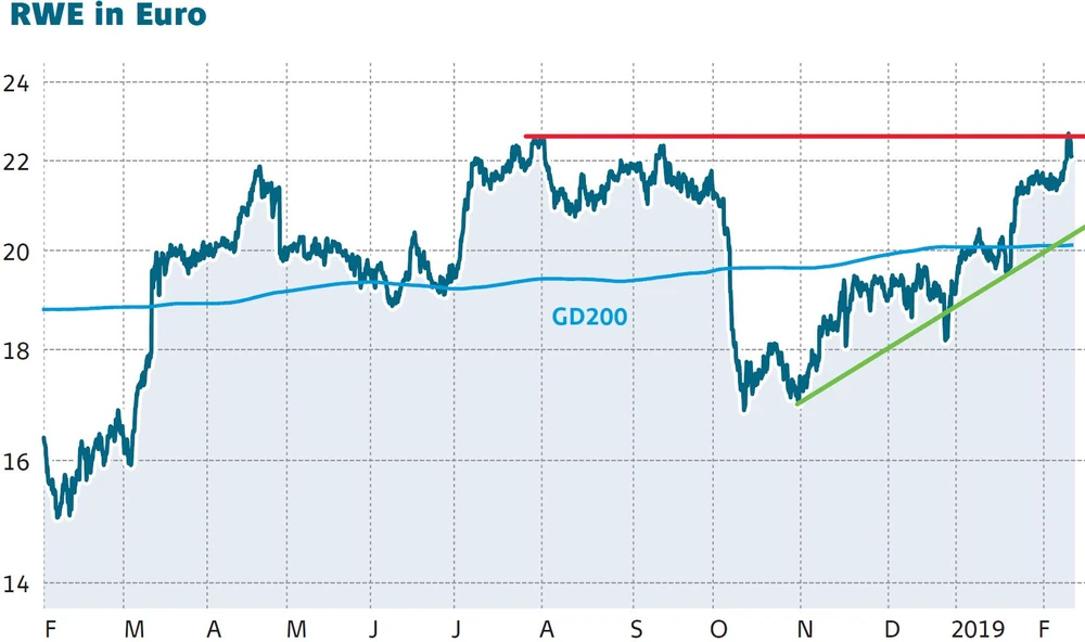 Die Kursentwicklung von RWE ist beeindruckend. Am Dienstag hat der DAX-Titel zwischenzeitlich ein neues 52-Wochen-Hoch erreicht. Ein nachhaltiger Angriff auf das Mehrjahreshoch bei 23,31 Euro scheint eine Frage der Zeit zu sein. Schwung verleihen die Pläne der Kohlekommission zum Kohleausstieg – dieser könnte einen unerwarteten Gewinntreiber hervorbringen.