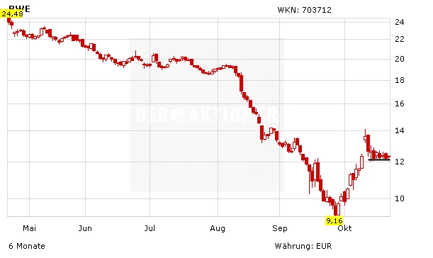 Seit dem Sprung über die 12-Euro-Marke Anfang Oktober fehlen der RWE-Aktie die Impulse. Der DAX-Titel pendelt seitdem in einem engen Korridor oberhalb von 12 Euro. Die Aussicht auf weitere Beteiligungsverkäufe wird am Markt positiv aufgenommen und sorgt am Donnerstag für ein moderates Kursplus.