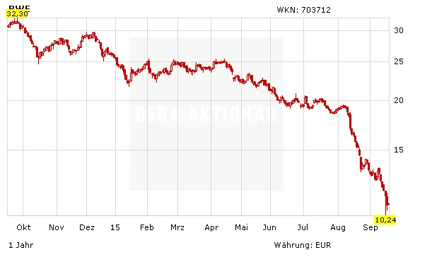 Das Analysehaus Kepler Cheuvreux hat RWE dagegen von "Hold" auf "Reduce" abgestuft und das Kursziel von 13 auf zehn Euro gesenkt. Anleger sollten Versorger-Aktien meiden, empfiehlt Analyst Ingo Becker. Er habe bereits seit 2009 einen strukturellen Crash im Strommarkt vorausgesagt. Zu seiner negativen Sicht seien die jüngsten Nachrichten von Eon über massive Abschreibungen hinzugekommen, die womöglich auch noch auf RWE zukommen könnten.