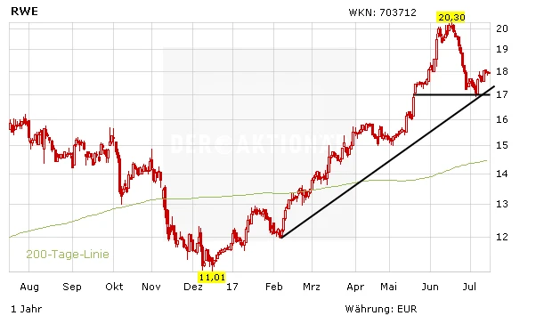 RWE muss sich darauf einstellen, dass sich die Energiewelt im Wandel befindet. Allerdings wird der Strom der konventionellen Kraftwerke nach wie vor dringend benötigt. Die Hoffnung auf steigende Strompreise hat die Aktie seit Jahresbeginn deutlich angetrieben. RWE bleibt spekulativ, Mutige können aber weiter auf eine Fortsetzung der Erholung setzen.