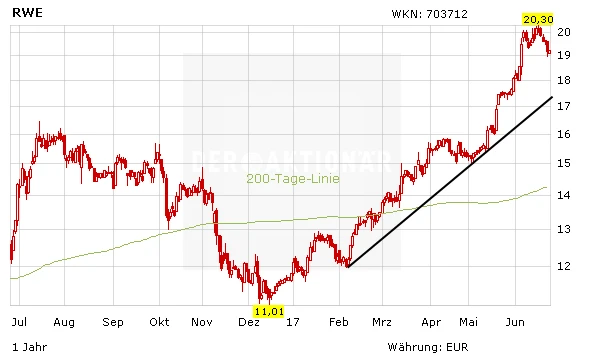 Krebber bekräftigte zudem die Forderung nach einem Kapazitätsmarkt. Sollten die konventionellen Versorger eine Vergütung für die reine Bereithaltung von Strom erhalten, würde das der RWE-Aktie Auftrieb geben. Doch auch so treibt die Hoffnung auf steigende Strompreise den DAX-Titel weiter an. Mutige können weiter auf steigende Kurse setzen.