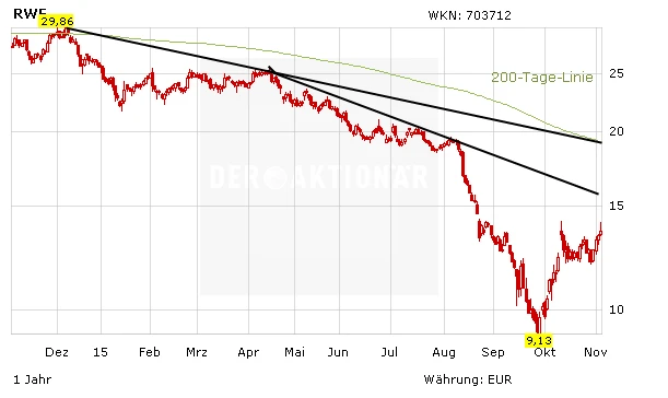 Zwar hat RWE in der Vorwoche den Bau eines Offshore-Windparks  vor der britischen Küste angekündigt und damit einen Hinweise gegeben wie das Unternehmen auch zukünftig Strom produzieren will, aber weiter sind zu viele Baustellen offen. Anleger sollten sich von der Gegenbewegung nicht verleiten lassen und weiter einen Bogen um das Papier machen.