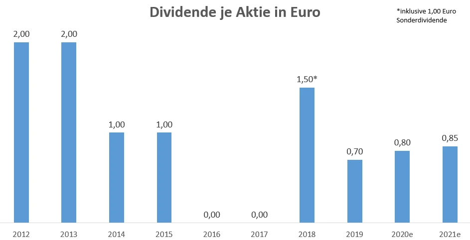 RWE ist damit wieder auf dem Weg zurück zu einem Dividendengaranten. Noch 2016 war der Aufschrei groß, als der Versorger wegen Milliardenverlusten durch Abschreibungen im Rahmen des Atomausstiegs die Ausschüttung strich. Da auch die Kohlekraftwerke auf der Kippe standen, befürchteten viele Anleger einen Kollaps. Doch seit 2018 schüttet der Konzern wieder attraktive Dividenden aus. Mit der Rückbesinnung auf Erneuerbare Energien hat sich RWE zudem selbst wieder eine Zukunft gegeben.