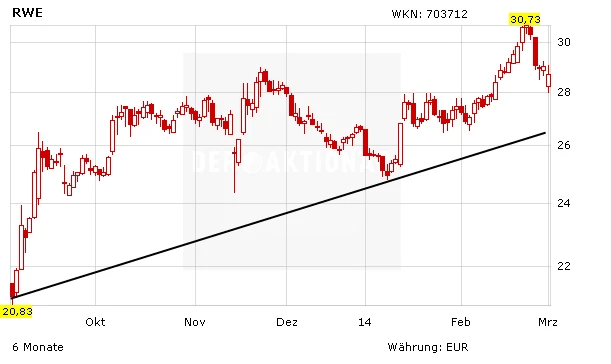 Als eine der wenigen Aktie haben sich die Versorger RWE und E.On von der Marktschwäche am Montag nicht anstecken lassen. Vor einem Engagement warten Anleger eine weitere Beruhigung des Gesamtmarktes ab.