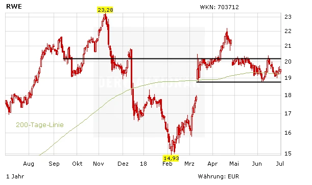Die RWE-Aktie hält sich im schwachen Marktumfeld nach wie vor stabil. Dank der Rückbesinnung auf die erneuerbaren Energien kann der Konzern auch dem Kohleausstieg gelassener ins Auge blicken. Der Versorger ist gut aufgestellt, Anleger lassen die Gewinne laufen.