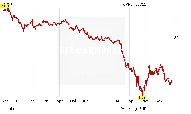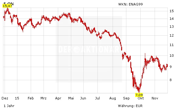 Im freundlichen Gesamtmarkt der vergangenen Tage hatten sich auch die gebeutelten Versorger-Titel etwas erholen können. Am Freitag sind RWE und E.on aber wieder mit Abstand die schwächsten Werte im DAX. In Anbetracht der hohen Unsicherheit in der Branche sollten Anleger die Aktien weiterhin meiden. Zuletzt erwies sich insbesondere die Marke von zehn Euro als massiver Widerstand, der nicht nachhaltig überwunden werden konnte. Derzeit pendelt die Aktie wieder um die 9-Euro-Marke.