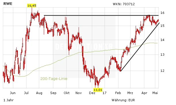 Nach dem starken Jahresauftakt hat die RWE-Aktie den Anstieg zuletzt oberhalb der 15-Euro-Marke konsolidiert. Am kommenden Montag wird der Versorger seine Quartalszahlen präsentieren. Dann muss sich zeigen, ob der Umbau bereits Früchte trägt. Unabhängig davon soll die Struktur nicht weiter umgekrempelt werden. Die Tochter Innogy bleibt an Bord.