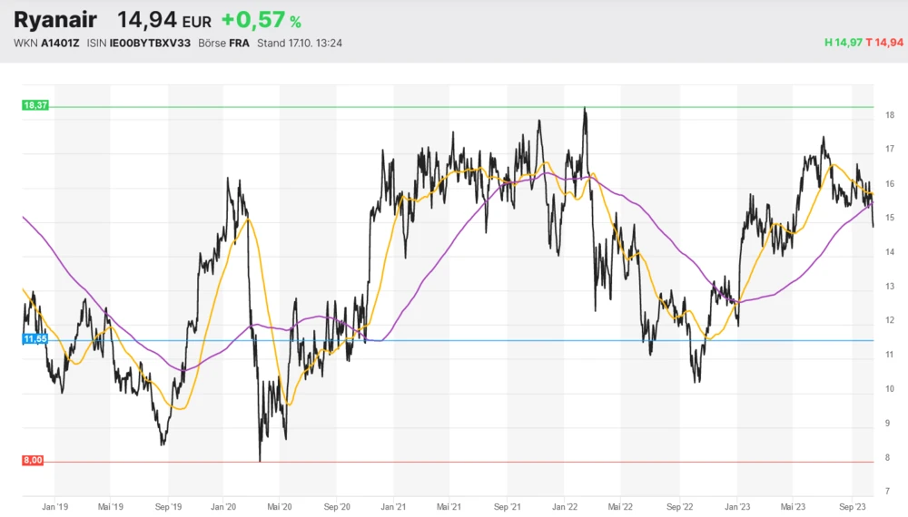 Das Chartbild von Ryanair hat mit Unterschreiten der 200-Tage-Linie ein Verkaufssignal geliefert. Langfristig dürfte die Deutschland-Expansion zu höheren Kursen führen, mit Kursziel 23 Euro und Stopp 12,90 Euro ist die Billig-Airline seit Mitte Januar eine Empfehlung von DER AKTIONÄR.