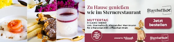 Das erfolgreiche Ergebnis dieser Kooperation ist die „Muttertags-StarchefBox powered by Hummel Manufaktur“, welche das Beste aus beiden Welten vereint. Hier wird Ihnen ein bereits vorbereitetes 3-Gang-Gourmetmenü für zwei Personen geboten, welches Sie – die Anleitung liegt bei – mit nur wenigen Handgriffen vollenden und genießen können. Enthalten sind kulinarische Meisterwerke wie eine Spargelcremesuppe mit Lachsrose und Croûtons, in Weißwein geschmorte Ochsenbäckchen mit Nussbutterbröseln, Spargel und Butterkartoffeln sowie geeistes Proseccosoufflé mit Himbeercoulis. Abgerundet wird das gesamte Gourmet-Erlebnis mit zwei perfekt abgestimmten Weinen.