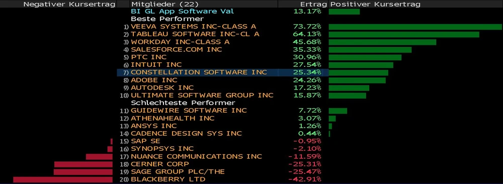 Die Tatsache, dass Salesforce vor seinen Konkurrenten in die Cloud investiert hat, gewährt dem Software-Konzern jetzt höhere Wachstumsraten. Im Jahresvergleich wird zudem klar: Wer seine Software in der Cloud anbietet, dessen Aktienkurs performt besser. Das zeigt nicht nur Salesforce mit einem Kursgewinn von 35 Prozent – sondern auch Veeva Systems, Tableau Software, Workday, Adobe und Ultimate Software. Kann SAP hier aufholen?