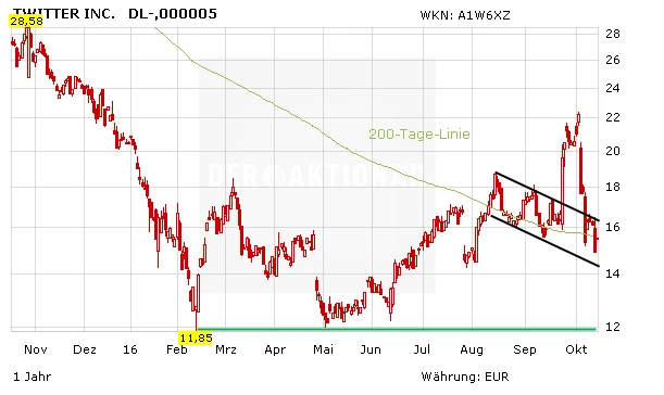 Die Twitter-Aktie verlor daraufhin am Freitag gut fünf Prozent. Die Aktie befindet sich mittelfristig in einem Abwärtstrend und dotiert unter der bei 15,60 Euro liegenden 200-Tage-Linie. Nach unten wird das Papier im Bereich des Allzeittiefs unterstützt.