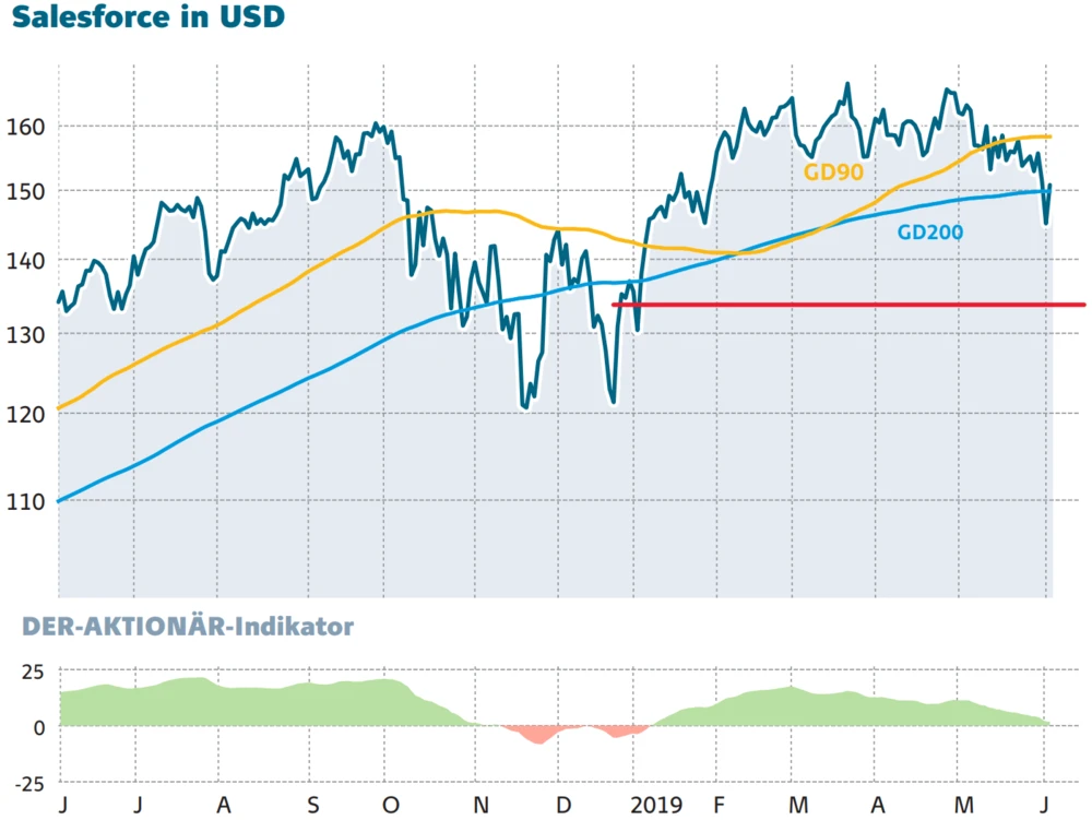 Seit Ende April kam der Kurs von Salesforce deutlich unter Druck. Im Zuge der Zahlen schaffte es die Aktie jedoch die wichtige 200-Tage-Linie zurückzuerobern. Damit generierte Salesforce ein Kaufsignal. Trotz eines schwierigen Marktumfelds dürfte das Aufwärtsmomentum bei der Aktie weiter anhalten. DER AKTIONÄR sieht Salesforce langfristig als einen der stärksten Akteure am Cloud-Markt.