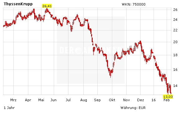 Entsprechend leidet die deutsche Stahlindustrie seit längerem unter dem Verfall der Stahl- und Rohstoffpreise. Zwar hatten sich die deutschen Stahlkonzerne ThyssenKrupp und Salzgitter zuletzt wieder etwas aus der Krise gekämpft, die Aussichten bleiben jedoch eher trüb.