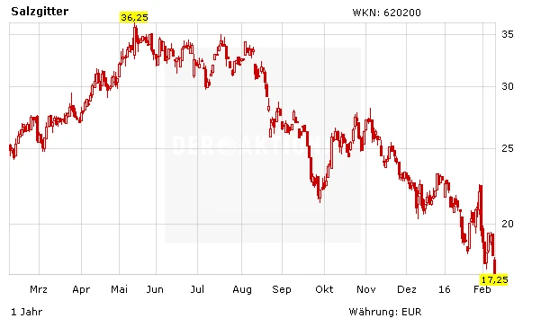 Für Verunsicherung und fallende Kurse hatte in der vergangenen Woche eine Hiobsbotschaft vom weltgrößten Stahlkonzern ArcelorMittal gesorgt. Zusätzlich drückt bei Salzgitter am Dienstag eine Verkaufsempfehlung der Commerzbank auf die Stimmung – das Institut hat das Kursziel von 21 auf 17 Euro gesenkt und das „Reduce“-Rating bestätigt.