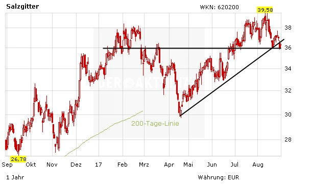Salzgitter will sich selbst nicht aktiv an der Konsolidierung beteiligen. Eine Stahlfusion wäre dennoch positiv für die Aktie, da die Überkapazitäten in der Branche reduziert werden könnten. Die Hoffnung auf steigende Stahlpreise und die Diversifizierungsstrategie des Konzerns sollten den MDAX-Titel weiter antreiben. Anleger bleiben bei Salzgitter an Bord und lassen die Gewinne laufen. Der Stoppkurs liegt bei 29,00 Euro.