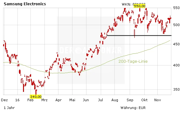Satte fünf Milliarden Dollar kostete Samsung der Rückruf der brennenden Galaxy Note 7 Smartphones. Aber es bleibt noch genügend Profit übrig, um die Aktionäre daran teilhaben zu lassen. Abzüglich anstehender Kapitalaufwendungen soll die Hälfte der angehäuften Gewinne in Aktienrückkäufe und Dividendenausschüttungen fließen. Der Plan für die Dividende steht bereits. Ab nächstem Jahr wird eine 30 Prozent über dem Vorjahresniveau liegende vierteljährliche (vorher halbjährliche) Dividende ausgeschüttet.