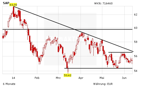 Auch DER AKTIONÄR hält die Aktie von SAP weiterhin für unterbewertet. Mit einem 2014er-KGV von 16 ist der Wert keinesfalls zu teuer. Derzeit arbeitet die Aktie daran, im Bereich von 55 Euro einen tragfähigen Boden auszubilden. Sobald diese Phase abgeschlossen ist, dürfte SAP recht schnell die Marke von 60 Euro überspringen können. DER AKTIONÄR spekuliert deswegen weiterhin im Real-Depot mit Hebel auf steigende SAP-Kurse.