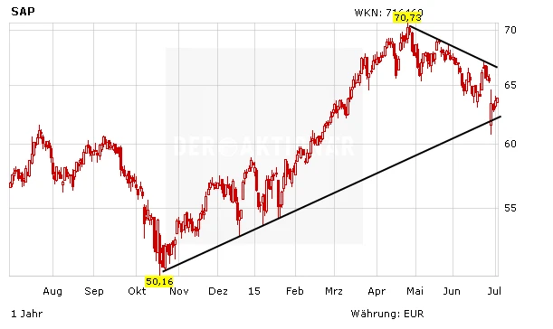 Die Entwicklung bei Salesforce ist beeindruckend. SAP muss deshalb jedoch nicht in Panik verfallen. Die Konzentration auf das zukunftsträchtige Cloud-Geschäft wird sich bald auszahlen. Dies dürfte sich dann auch im Aktienkurs widerspiegeln. Investierte Anleger bleiben dabei und beachten den Stopp bei 54 Euro.