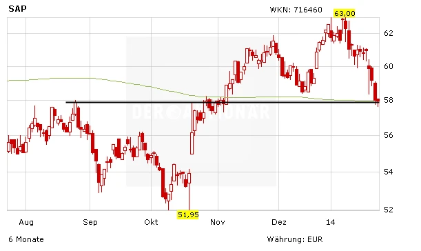 Zudem konnte sich die Aktie am Donnerstag der schwachen Gesamtmarktstimmung nicht entziehen. Aktuell notiert SAP jedoch an der massiven horizontalen Unterstützung bei 58,00 Euro und auch die 200-Tage-Linie dürfte für Stabilisierung sorgen. Positive Impulse könnten auch die jüngsten Zahlen von Microsoft bringen. Zwar ist der US-Konzern kein Wettbewerber, das gute Quartalsergebnis dürfte aber für eine allgemein gute Stimmung im Techsektor sorgen.