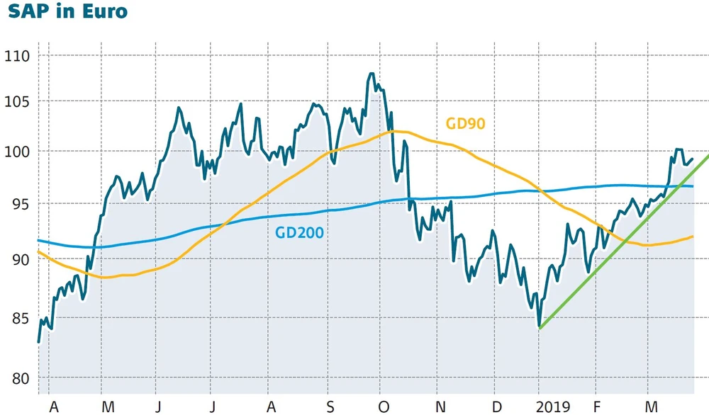 Langfristig orientierte Anleger sollten die leichte Abwärtsbewegung jedoch keinesfalls beunruhigen. Der Relative Stärke Index erreichte ebenfalls wie der MACD nach dem rasanten Ausbruch ein überkauftes Niveau. Zudem muss sich der DAX aufgrund der Konjunktursorgen mit deutlich größeren Kursverlusten herumschlagen – die SAP-Aktie hält sich hier gut. Der seit Jahreswechsel bestehende Aufwärtstrend ist nach wie vor intakt. Ein Rücksetzer auf die 200-Tage-Linie bei aktuell 96,60 Euro könnte diesen Trend jedoch brechen.