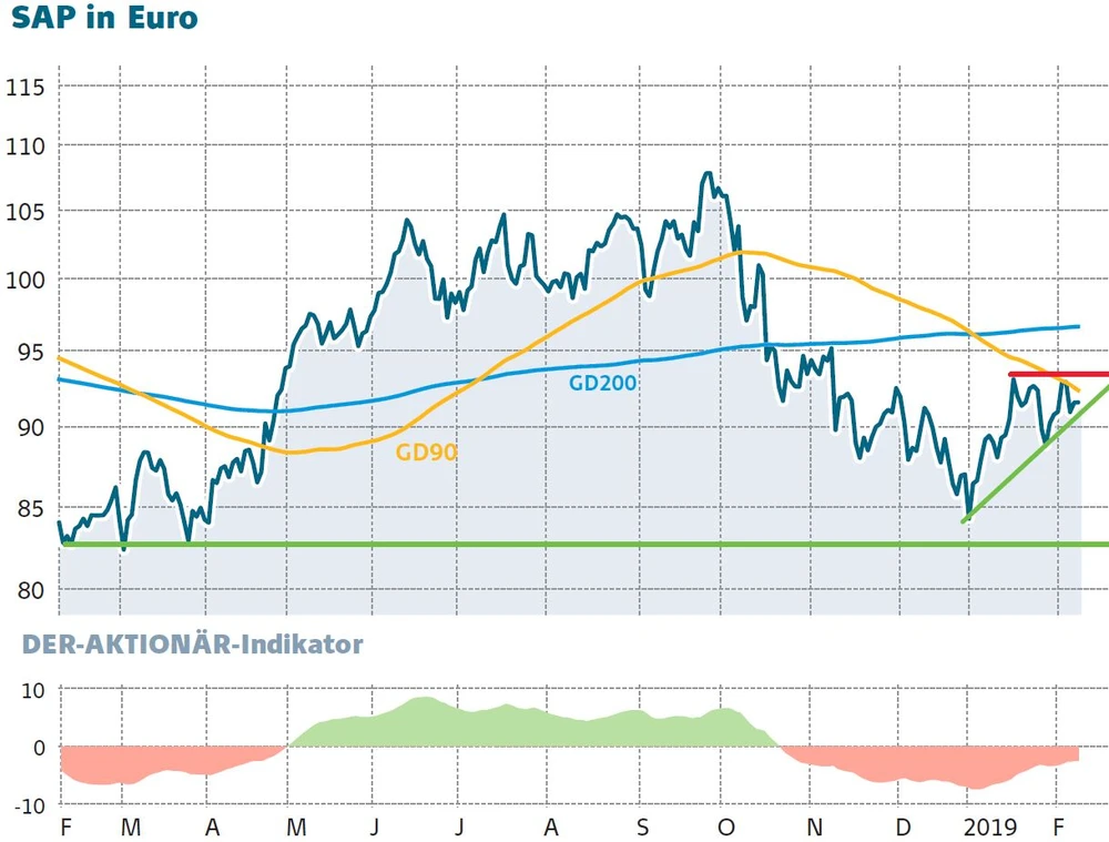 DER AKTIONÄR ist von der langfristigen SAP-Wachstums-Story überzeugt und empfiehlt bei der kürzlich ausgestoppten Aktie: Auf die Watchlist setzen und auf das Kaufsignal warten. Noch kann das Papier im frischen Aufwärtstrend nicht die 90-Tage-Linie bei 92,40 Euro durchbrechen und das Verlaufshoch bei 93,60 Euro verhindert einen Ausbruch.