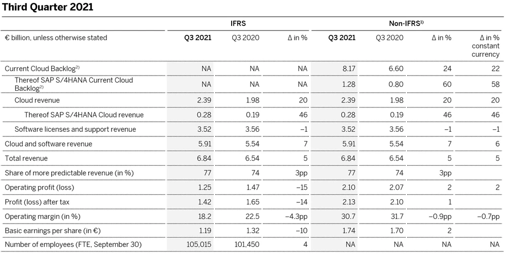 Dank der um ein Fünftel wachsenden Cloudgeschäfte zog der Umsatz insgesamt gegenüber dem schwachen Vorquartal um fünf Prozent auf 6,84 Milliarden Euro an. Analysten hatten zuvor mit einem deutlich schwächeren Anstieg gerechnet.