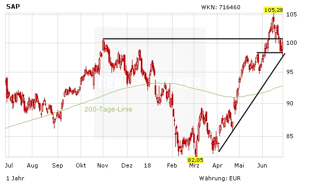 Der schwache Gesamtmarkt sorgt bei vielen Blue Chips für deftige Kursabschläge. In starker Verfassung zeigt sich trotzdem die Aktie des DAX-Schwergewichts SAP. Aktuell notiert der Titel knapp unter 100 Euro, das Rekordhoch vom 15. Juni 2018 bei 105,28 Euro liegt damit in greifbarer Nähe. Die Analysten sehen indes noch weiteres Kurspotenzial für die SAP-Aktie.