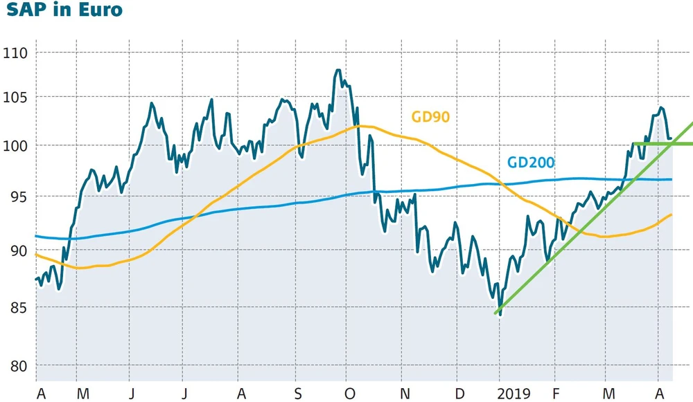 Die SAP-Aktie setzt am Montag die Abwärtsbewegung nach einer Abstufung auf "Reduce" durch Oddo BHF am Freitag fort und bewegt sich wieder in Richtung der 100-Euro-Marke. DER AKTIONÄR hat bereits Ende vergangener Woche zu Gewinnmitnahmen geraten und den Stopp nachgezogen. Langfristig bleibt DER AKTIONÄR jedoch bullish eingestellt. Nach einer kurzfristigen Konsolidierungsphase sollte die Marke von 105 Euro bei einem erneuten Anlauf zurückerobert werden.