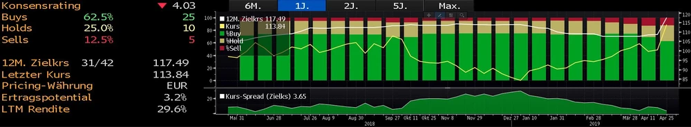 Die Hochstufungen der Kursziele hat das Konsensziel von SAP deutlich nach oben getrieben. Lag es vor den Zahlen noch bei 108 Euro, liegt es nun bei 117,49. Die Zahl der Analysten, die ein BUY-Rating aussprechen, hat sich dagegen nicht geändert.