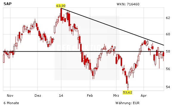 DER AKTIONÄR bleibt optimistisch für die SAP-Aktie. Mit dem Cloud-Geschäft und den Big-Data-Dienstleistungen ist der Softwarekonzern optimal für die Zukunft aufgestellt. Investierte Anleger bleiben dabei. Das Kursziel lautet 75 Euro. Ein Stopp bei 49 Euro sichert die Position ab.