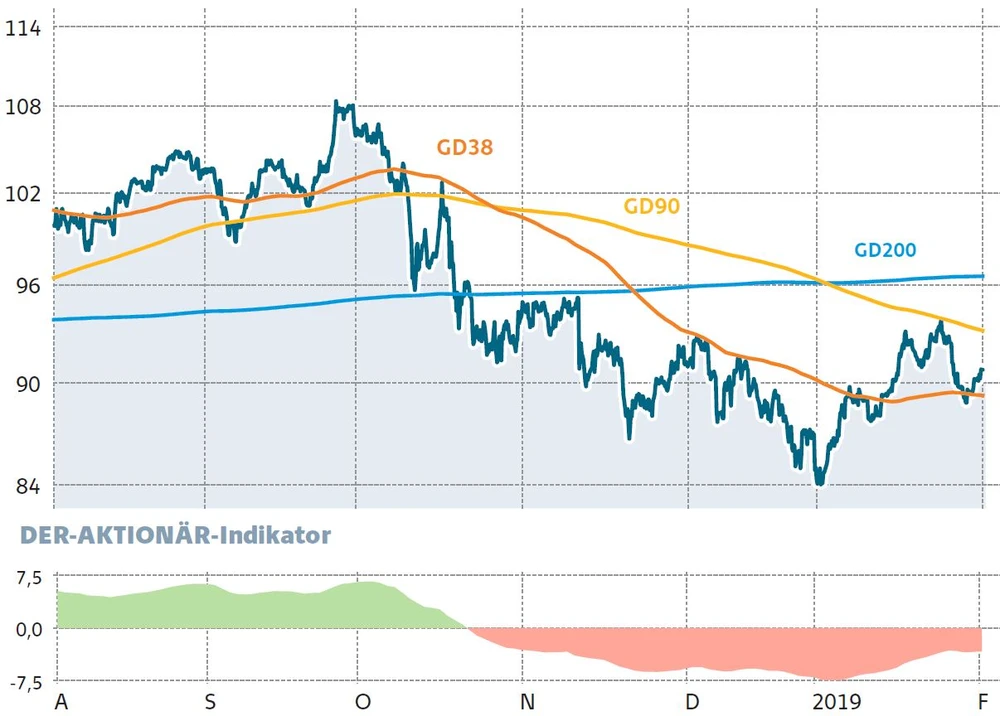 Charttechnisch ist die Aktie nach den Zahlen an der 90-Tage-Linie abgeprallt und hat sich auf die 38-Tage-Linie zurückgezogen. Für ein neues bullishes Signal gilt es nun den frischen Aufwärtstrend zu verteidigen und einen erneuten Anlauf in Richtung 90-Tage-Line bei aktuell 93,16 Euro zu nehmen. Bis dahin sollten Anleger abwarten.