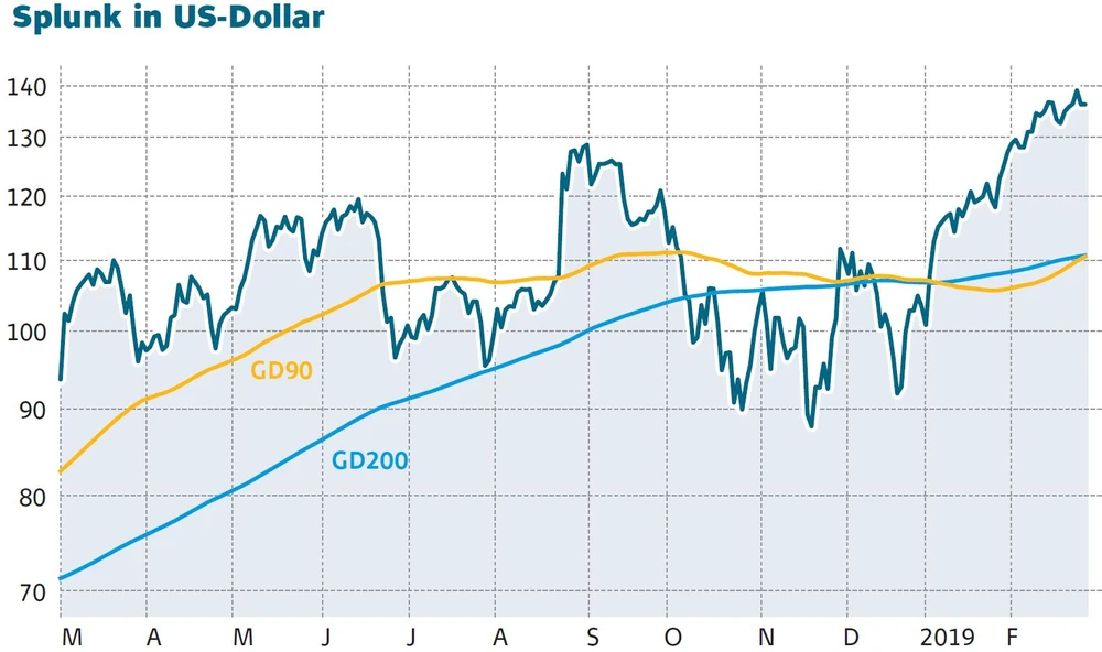 Splunk überraschte im vierten Quartal Anleger und Analysten. Der Umsatz kletterte um 35 Prozent gegenüber dem Vorjahresquartal auf 622 Millionen Dollar – deutlich über den Erwartungen der Analysten von 563 Millionen Dollar und über der Prognose der Geschäftsführung. Die Gewinne je Aktie von 0,93 Dollar lagen ebenfalls über den Schätzungen von 0,76 Dollar. Zudem konnte Splunk 600 Neukunden hinzugewinnen- Im Vorangegangenen dritten Quartal waren es nur 500 Kunden.