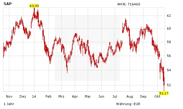 Der Weltmarktführer für Unternehmenssoftware steigerte den Umsatz im dritten Quartal im Vergleich mit dem Vorjahreszeitraum um 5 Prozent auf 4,26 Milliarden Euro. Taktgeber war einmal mehr die Cloud mit einem Anstieg von 41 Prozent auf bereinigt 278 Millionen Euro. Die Lizenzumsätze mit herkömmlicher Software gingen dagegen zurück. Unter dem Strich verdiente der Konzern mit 881 Millionen Euro 16 Prozent mehr als vor einem Jahr, vor Zinsen und Steuern waren bereinigt 1,36 Milliarden Euro übriggeblieben. Bei Cloud-Umsätzen und Nettogewinn übertraf SAP die Erwartungen der Analysten.