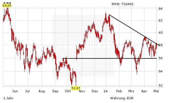 DER AKTIONÄR hält an seiner optimistischen Einschätzung für SAP fest. Mit dem Cloud-Geschäft und Big-Data-Dienstleistungen setzt der Softwarekonzern auf Zukunftsmärkte. Investierte Anleger bleiben dabei. Das Kursziel lautet 75 Euro. Ein Stopp bei 49 Euro sichert die Position ab.